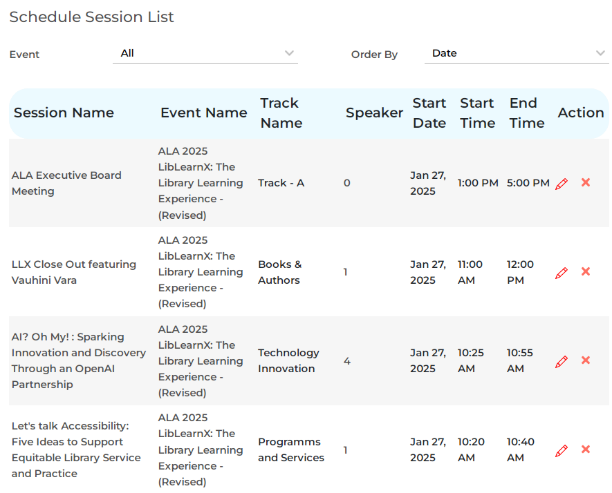 * Event Scheduling Software for Event Professionals. * Simplify and expedite agenda creation process. * Seamlessly manage complex trade shows and professional conferences. * Organize speaker and sponsor database. |